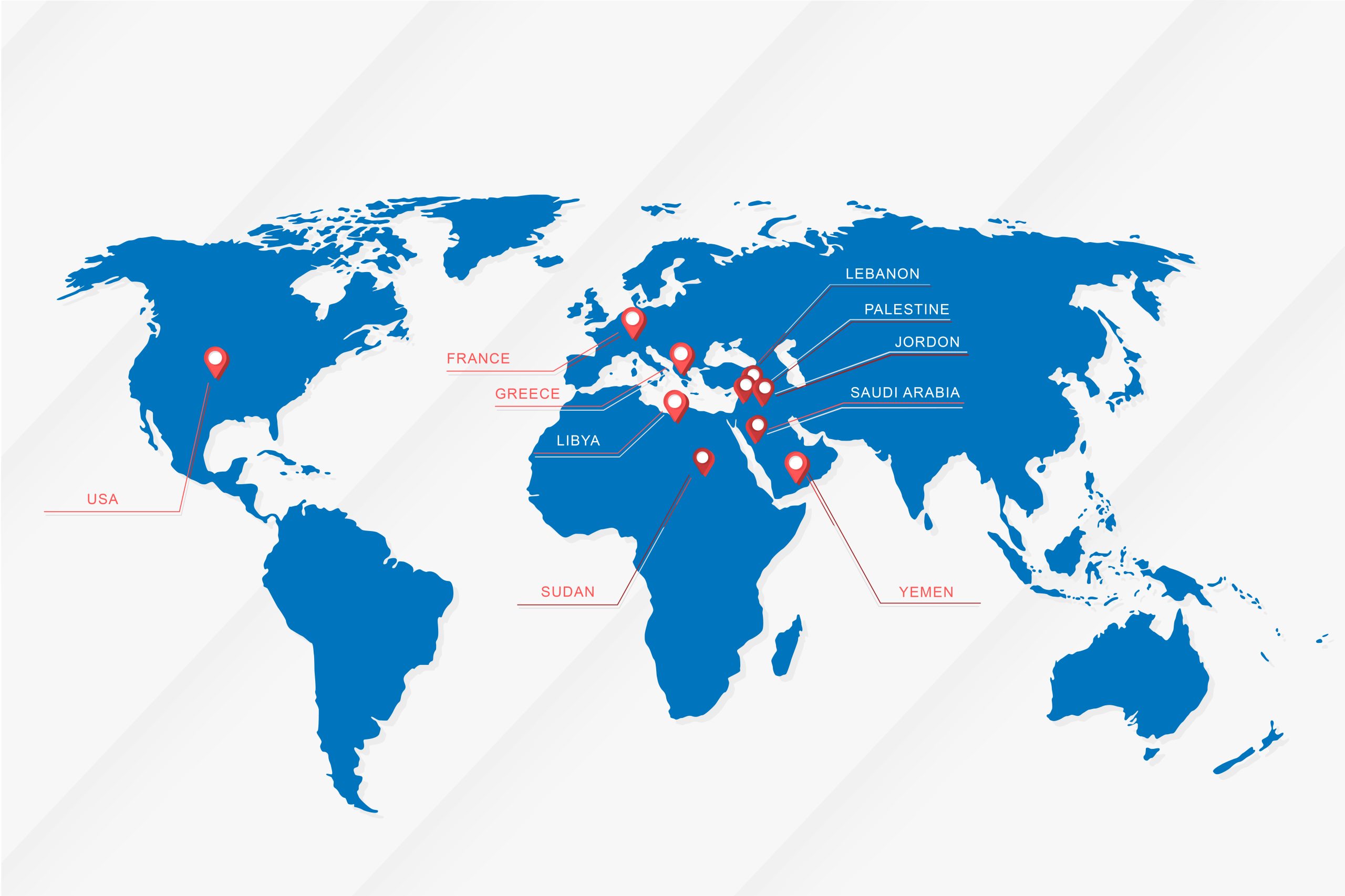 ( USA – France – Lebanon – Palestine – Jordon – Saudi Arabia – Yemen –